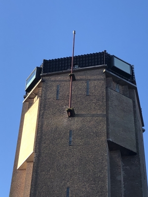 Op de watertoren van Sint Jansklooster staat sinds jaar en dag een vlaggenmast, een hele lange vlaggenmast, meer dan 12 meter.