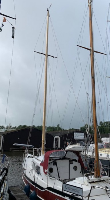 Een klassiek zeiljacht uit de jaren '60 was al jaren geheel ontdaan van masten en rondhouten. Alleen het beslag en een paar oude zeilen waren nog aanwezig. In overleg met de eigenaar is er een geheel nieuwe tuigage ontworpen, gericht op gebruiksgemak en behoud van het karakter van het schip.