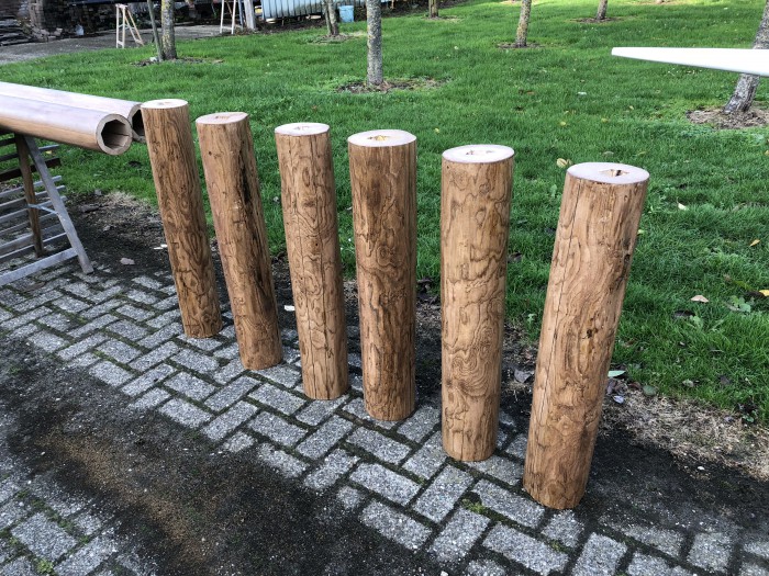 Omdat er in het zomerseizoen nog wel eens een motorbootmast sneuvelt proberen we er enkele in ruwbouw op voorraad te hebben. Meestal is de voetmaat 100x100mm en de lengte ligt vaak rond de 250cm. We maken ze iets groter en langer want kleiner maken kan altijd!