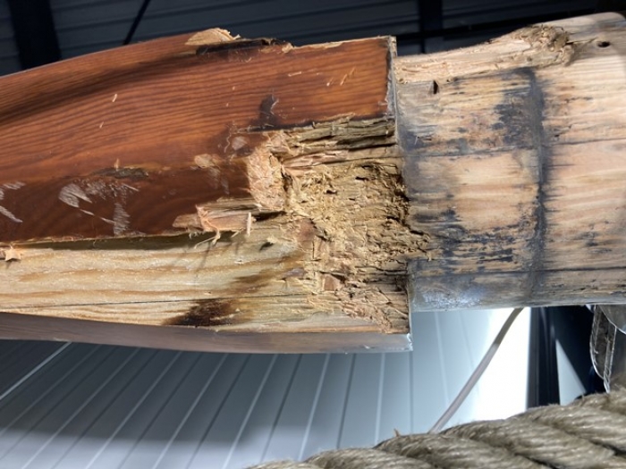 Een door houtrot aangetaste mast is vaak nog goed te repareren.